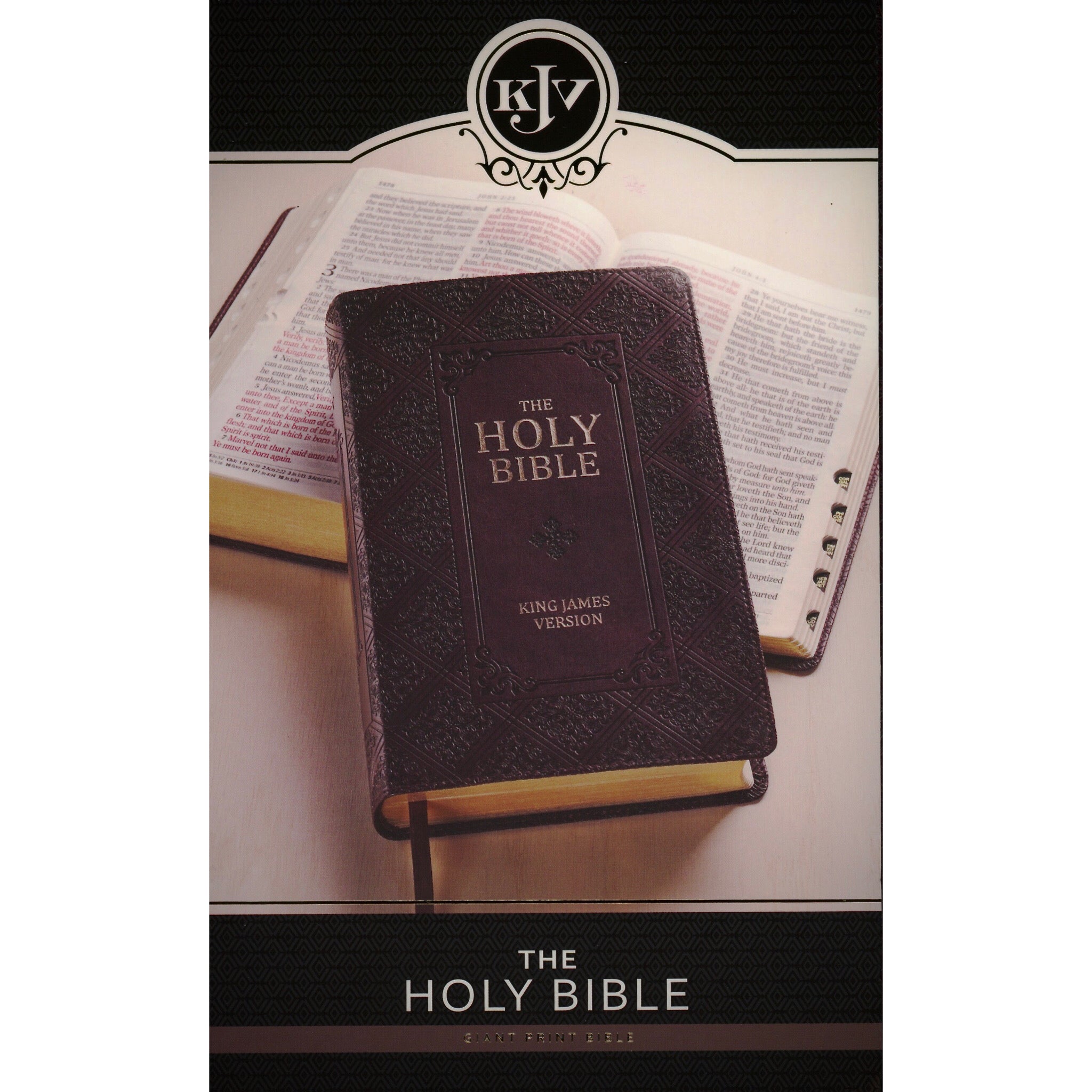 The King James Version Holy Bible, giant print, exquisitely designed cover of Dark Brown faux leather & thumb Index reflects the importance of its content. It will become a keepsake Bible that will be handed down from generation to generation just like God's faithfulness. Words of Christ in red.