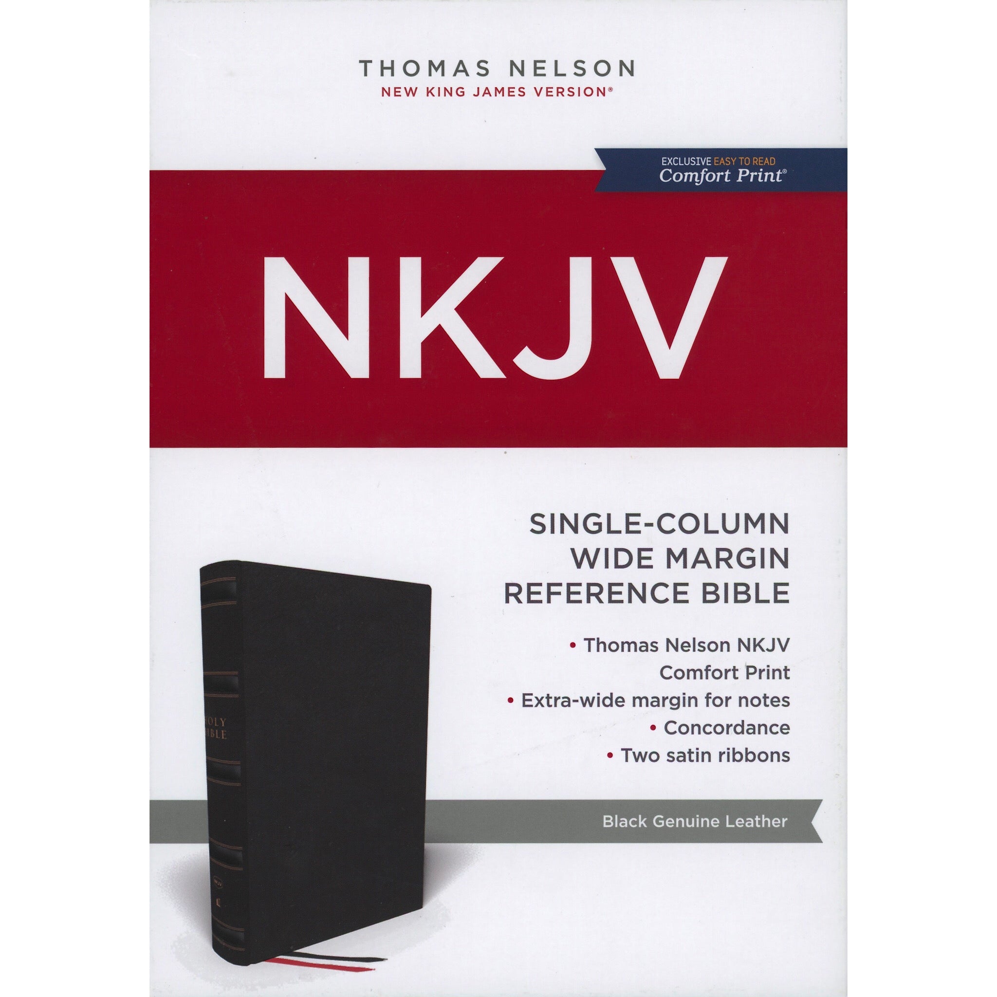 NKJV Single-Column Wide Margin Reference Bible, Black, Genuine leather