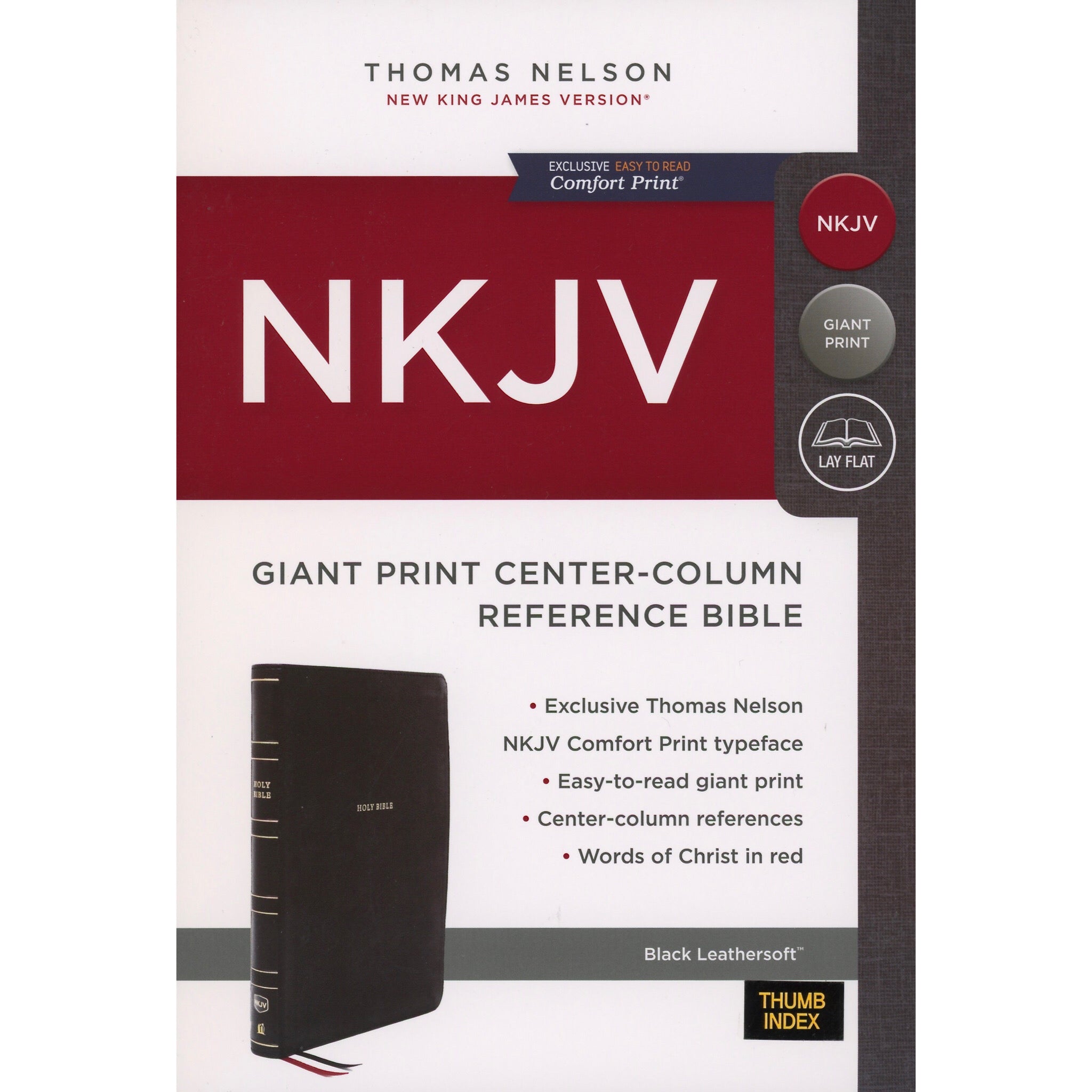 NKJV Giant Print Center Column Reference Bible, Black Leathersoft, Thumb Index